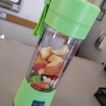 This blender is awesome. I have been using it for a while and I simply love how convenient it is. I can charge it and bring it to work or leave it on my desk. Whenever I am feeling hungry and want something to drink, I can blend some fruits in it and have a smoothie. The charge lasts for a while and the blender itself is not very big in size which makes it convenient to bring around everywhere. In fact, you could even use it as a water bottle if you want. This product is a great idea and I am surprised that the idea is not more popular.