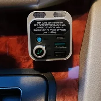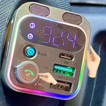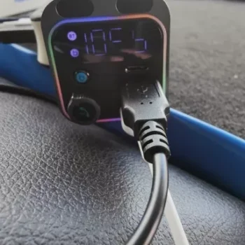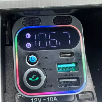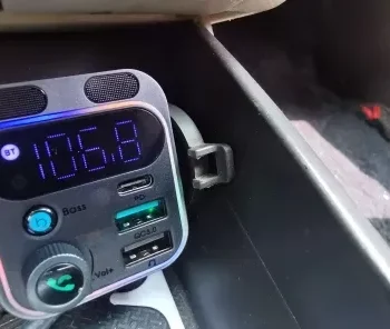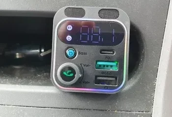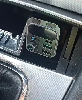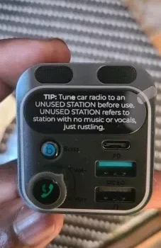 It works really well and the audio quality is top-notch, super easy to use too. It also supports 25W Super Fast Charge on my Samsung phone with the USB-C port, which was a nice surprise. Just a heads up, if you hear weird whining noises that change with engine RPM, it's not the device's fault but electrical interference with the car's 12V system. Some cars have this issue. To fix it, you can power the device with a power bank that has a 12V outlet, or if you're into electronics, use two 9-volt batteries in series with alligator clips. This gadget can handle up to 24 volts perfectly. Just don't charge your phone with it when using the 9V batteries setup. This way, you can get rid of any interference noise and enjoy amazing audio quality.