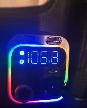 I tuned it to a blank radio frequency as instructed and it connected easily to my phone. Itโs much more flexible than other products with pre-set stations. I canโt use the Aux option in my car, but the included cable is a nice touch. The volume dial syncs with my phone, which is convenient. The bass button needs a couple of seconds to activate but it's pretty noticeable. The lighting is cool, especially for night drives, and the various charging ports are handy. I havenโt tried phone conversations yet, but Iโm optimistic about it. It's nicely compact compared to other models, making a real difference compared to using a portable speaker.