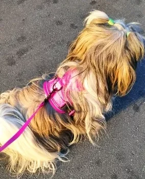This harness been such an upgrade for walkies. It's adjustable to fit just right, so he seems really comfy in it.