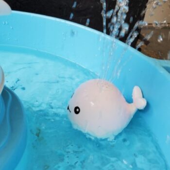 Not using this whale for the tub? Buy a couple of ‘em and throw them into the swimming pool or a large water fountain you have (after all, all you need is H2O to activate the toy). Works great for parties or outdoor celebrations.