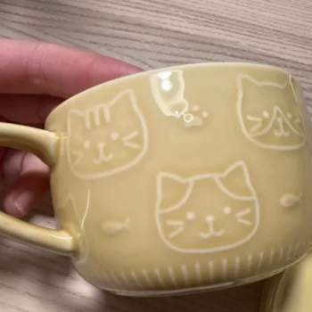 Ain't nothing better than waking up to those friendly faces greeting me every time I pour myself some joe outta this cuppa goodness right here 👉😉👈. The cats are a vibe and the quality's top-tier, keeps my brew hot for ages. Been using it daily since I got it and not a single chip or scratch yet! A+ purchase.