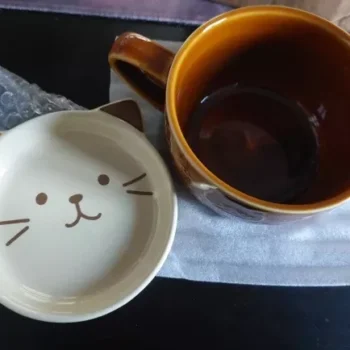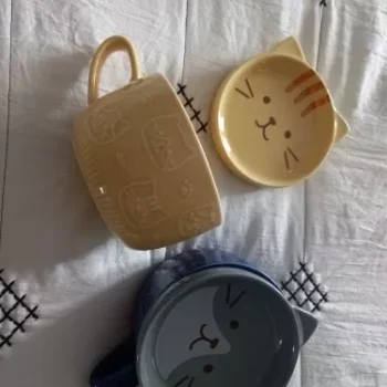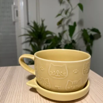 Start your day with a smile as you sip your favorite beverage from this delightful mug. Whether it’s coffee, tea, or hot chocolate, this mug is perfect for every morning ritual. Its charming cat pattern and small dish make it ideal for breakfast time or for enjoying a cozy drink before bed.