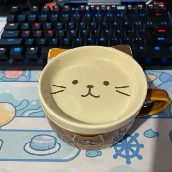 you know what? i never thought i'd be writing a review for a cup but here we are. bought this thing on whim cause the design caught my eye (i love cats) and boy am i glad i did! holds heat well enough that i don't have to rush through drinking before everything goes cold which is real nice first thing in the morning when you're trying to wake up slow.