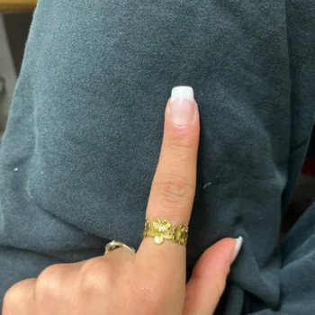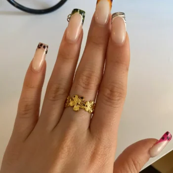 The unique combination of the adjustable design and the exquisite floral detailing sets this ring apart. It’s not just a piece of jewelry but a versatile accessory that adapts to your life and style. The robust stainless steel and luxurious 18K gold plating ensure it is as durable as it is beautiful, making it a staple in any jewelry collection.