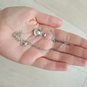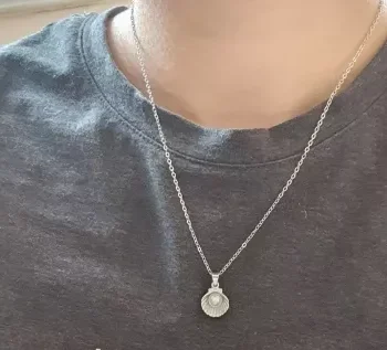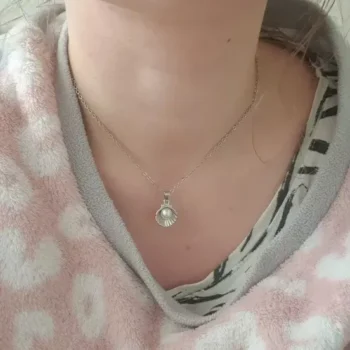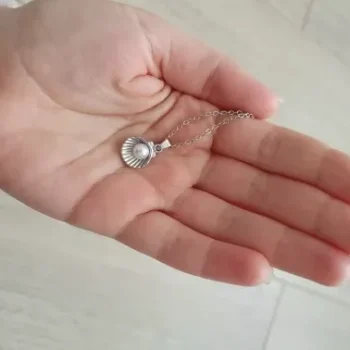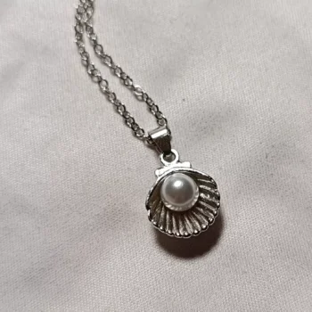 • Design: Features a sleek geometric shell pendant adorned with an elegant imitation pearl.