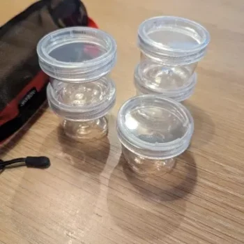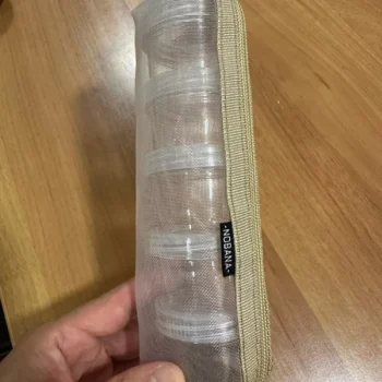 This portable spice kit includes five clear plastic bottles neatly organized in a durable mesh storage bag. Each bottle is designed for easy use and refill, making it simple to keep your essential seasonings fresh and ready to use. The mesh bag provides excellent ventilation and visibility, allowing you to quickly identify and access different spices.