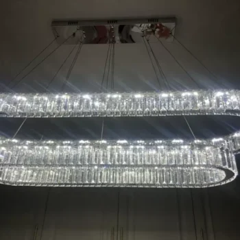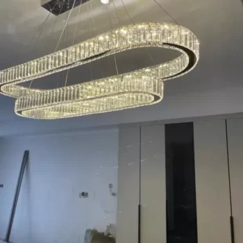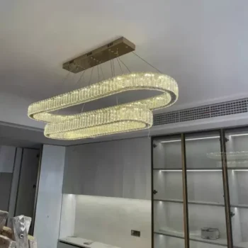 Bring a touch of sophistication to any room with our Contemporary LED Crystal Ceiling Pendant. Designed for modern living, this stylish fixture combines the allure of sparkling crystals with the sleekness of chrome, casting a warm and inviting glow in your dining room, kitchen, or bedroom. Its unique oval ring shape is not just an illumination source, it’s a statement piece that complements your home decor.