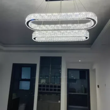 I recently upgraded my living room with this stunning light fixture, and it has become the focal point of my home. The combination of modern LED technology with elegant crystal elements exudes sophistication and style. During the day, the crystals catch natural light, creating a beautiful, shimmering effect that enhances the aesthetics of the room. At night, the LED lights illuminate the crystals, casting a warm, inviting glow that transforms the space into a luxurious haven. The quality of the light is remarkable; it's bright enough to light up the entire room but can be dimmed to create a softer, more intimate atmosphere. The energy efficiency of the LED bulbs is a bonus, reducing my electricity bill without compromising on brightness or quality. The fixture itself is a masterpiece of design, with each crystal meticulously crafted to reflect light beautifully. Installation was surprisingly easy, given the sophisticated appearance of the fixture. The adjustable height allowed me to position it perfectly in my space, and it became an instant conversation starter during gatherings. Friends and family have been consistently impressed, often inquiring where I found such a unique piece. This lighting fixture is not just a source of light; it's a piece of art that enhances the decor of any room it's in. It strikes the perfect balance between functionality and luxury, making it an excellent investment for anyone looking to elevate their home's interior design. Its timeless appeal and durable construction ensure that it will be a cherished part of my home for years to come.