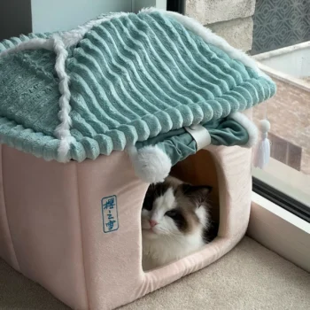 This pet house is ideal for indoor use, providing a warm and inviting space for your pet during the cold winter months. It’s perfect for pets who enjoy the coziness of a covered bed that offers both warmth and privacy.
