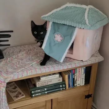 so impressed with the cozy pet house i bought last week. it's super soft comfy and my cat loves to snuggle up in it. keeps her nice and toasty on cold days.