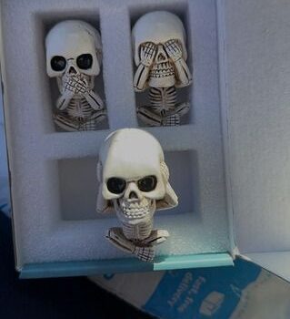Our exclusive Skull Sculptures Set, featuring the ‘See Nothing, Say Nothing, Hear Nothing’ skulls, is a creative take on the classic proverb. This set, made of high-quality resin, offers a unique and artistic expression for skull enthusiasts and makes a striking addition to any space.