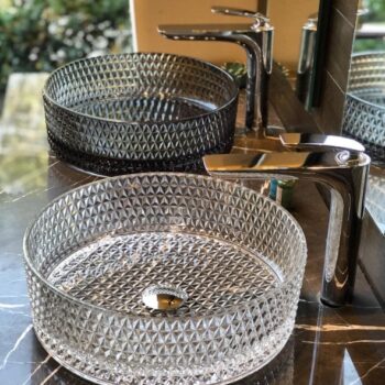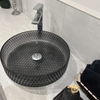 Set against black walls and matte gold details, this vessel basin looks incredible. The textured exterior brilliantly catches the light, adding a sparkling character to the room and perfectly completing the desired look.