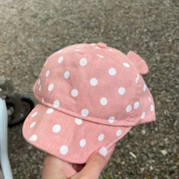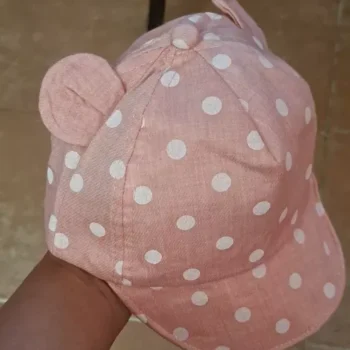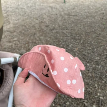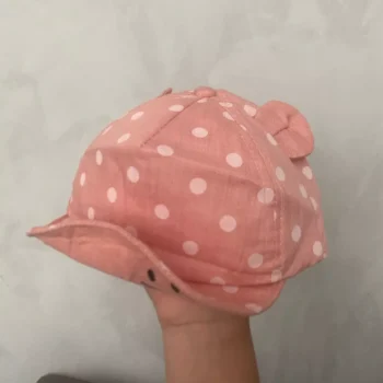 This sunhat isnโt just about adorable looks; itโs crafted to provide your little one with ultimate comfort and protection during the sunniest days. The fitted strap ensures the hat stays securely in place, even during active play, while the breathable cotton fabric keeps your child cool. Available in a selection of gentle pastel colors with a delightful dot pattern and 3D ears, this hat is as cute as it is functional.