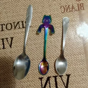 💖🐱 oh, these little spoons! they're just the cut things ever. love how they've got this cat design - it's so quirky and fun. plus, they're stainless steel so you know they’re not going to break bend easily. 😁