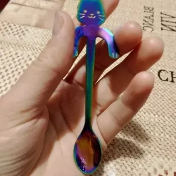 These little cat-themed spoons have totally jazzed up my everyday life. Seriously, they're gorgerous! Their cute-as-a-button look is just the cherry on top of their impressive quality. They've been pulling weight my kitchen every single day for months now and guess what? No signs of wear or tear at all - no rusting, no bending outta shape. Now whether you're a tea person who loves to stir in heaps of sugar or someone who can't resist scooping dollops of jam onto your toast, these spoons got your back. And the best part? You don't have to worry about them scratching your precious mugs. Trust me when I say this: they are as gentle as a feather touch. So go ahead and treat yourself (or maybe even gift someone) with these adorable spoons because they truly do make ordinary tasks feel extraordinary.