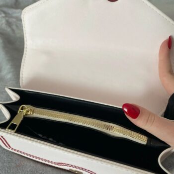 Overall, the bag is of good quality and doesn't have a strong odor. While there are some threads visible at the seams, it's nothing major. The chain is sturdy, and the matte finish gives it a sophisticated look. The color is more of an ivory than pure white, which adds to its elegance.