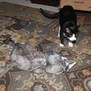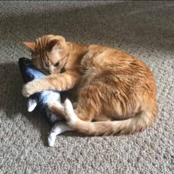When you’re too busy with the stresses and demands of daily life to continue jingling bells or throwing tennis balls around to entertain your pet cat, it’s time to find a toy that can entertain your kitty all on its own. One that can do its own tricks (without need of human help or control). Enter our Dancing Fish Catnip Kicker Toy, a plush fish that comes to life to keep your cat intrigued for hours.