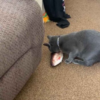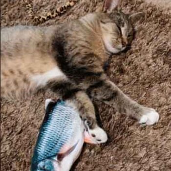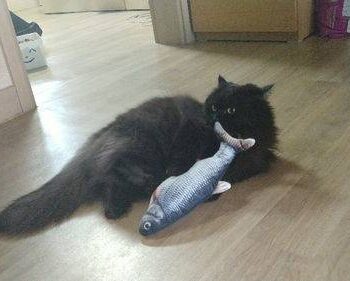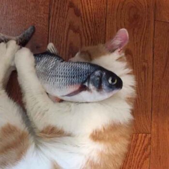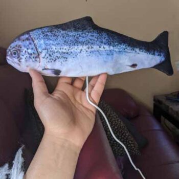 Thanks to a built-in motion-detecting motor, our fish flops with life-like motion when your cat interacts with it or moves near it (imagine the fear and excitement!). When it’s left alone, the fish will not move — playing dead until your cat approaches it again. The motion sensor even adjusts its level of movement based on your cat’s movement: it goes fast if your cat is scurried, and it also moves slowly if your cat is approaching it slowly.