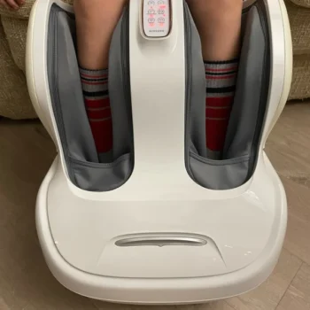 I'm fond of this device because it massages not just the feet but also the ankles and calves with its five settings, vibration, and heat functions. Initially, it may feel a bit intense, but it soon turns into a relaxing experience, despite the heat being mild. It's a bit heavy, making it less portable, but it's the best option I've encountered.