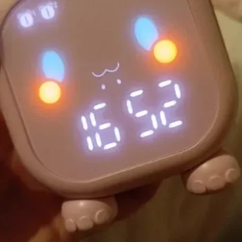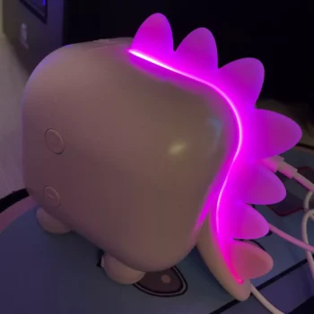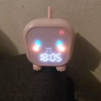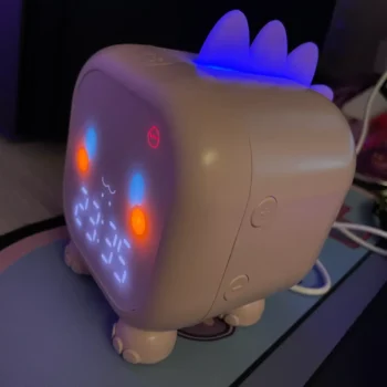 This dinosaur clock is adorable. My kids love it. Easy to set up, lights up in different colors, making a perfect night light. No issues after months of use. Highly recommend!