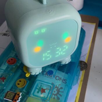 My kids adore this alarm. They find it cute and love its looks and colors. The alarm sounds are ideal for kids, waking them up gently.