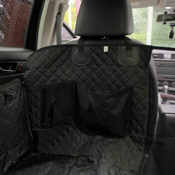 Two built-in pockets are featured on the seatback covers for your two front seats, allowing you to store your pet’s essentials like a leash or snacks.