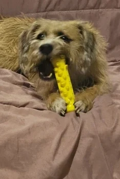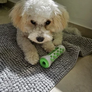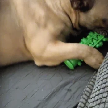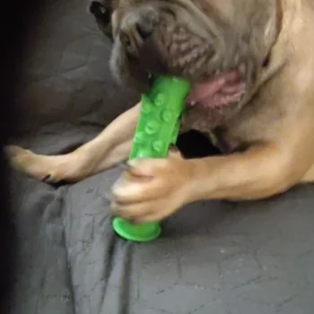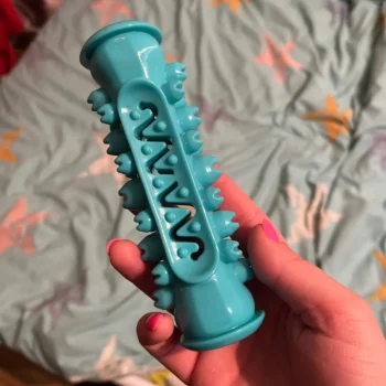 This has been a game-changer our household. Our pup used to hate getting her teeth brushed, but now she looks forward to play with her new favorite toy. Her dental health has improved significantly.
