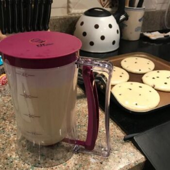 The Easy-Pour Dispenser is not just a tool; it’s your partner in the kitchen. Say goodbye to messy counters and unevenly sized pancakes. With this dispenser, you get consistent size and shape every time, effortlessly. It’s perfect for pancakes, waffles, muffins, and even pizza sauce, making it a versatile addition to your kitchen arsenal. The easy-pull trigger handle ensures a comfortable grip, making baking fun and easy for all ages.