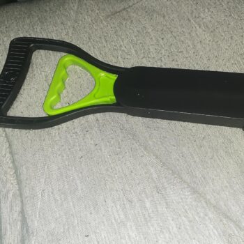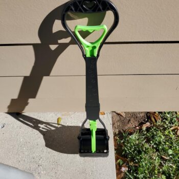 This pooper scooper has fulfilled my expectations after months of use. Squeezing the handle to open the jaws is effortless, and it effectively picks up and holds a considerable amount. The sturdy spring and handle have proven durable, and the green color adds a fun touch. The folding feature, though not utilized, adds to its versatility.