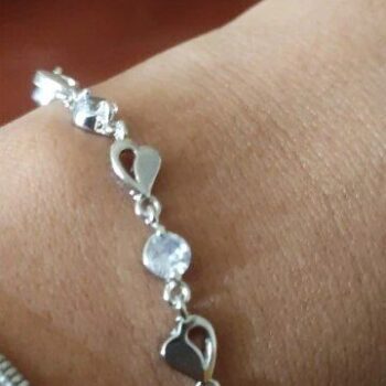 Introducing a masterpiece of craftsmanship and elegance, our Sterling Silver Heart Bracelet adorned with sparkling Cubic Zirconia. This fine jewelry piece combines classic charm with a touch of modern sophistication, making it a perfect accessory for any occasion. Whether you’re dressing up for a party or adding a splash of glamour to your everyday wear, this bracelet is designed to complement your unique style.