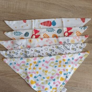 These versatile triangle scarves are more than just a practical accessory; they are a fashionable statement that complements any outfit. Ideal for boys and girls aged 0 to 36 months, each bib combines functionality with a touch of fashion flair.