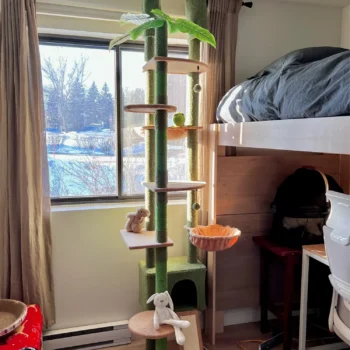 Our cat tree is not just a piece of furniture; it’s a playground, a rest area, and a scratching haven all rolled into one. The adjustable height ensures it can be easily integrated into any room, providing your cats with a personal space that’s both stimulating and secure. The unique cactus design not only adds a touch of whimsy to your decor but also caters to your cat’s instinctual need to climb, scratch, and play. Whether you have one cat or a small clowder, this cat tree is built to accommodate 4-6 kittens simultaneously, making it an ideal choice for multi-cat households.
