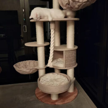 Our Multi-Level Wooden Cat Tree Tower stands out with its thoughtful design and quality construction. It’s not just a cat tree; it’s a commitment to your pet’s happiness and well-being. The natural wood material adds a touch of elegance, while the multiple levels offer endless opportunities for fun and relaxation. Say goodbye to simple scratchers and hello to a world of exploration and comfort for your cat.
