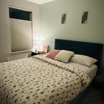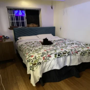Experience the ultimate in customization and comfort with our adjustable headboard. Offering three height settings, it caters to your unique comfort needs, whether you enjoy reading in bed or watching TV. The plush upholstered headboard, measuring 76.4″L x 81.9″W x 42.5″H, is not just a statement of style but also a promise of comfort. Our bed frame’s sleek, modern design, accentuated by its stunning blue color and wood finish, effortlessly complements any bedroom decor. Its appearance embodies modern style, Scandinavian simplicity, and a hint of modern Morocco, making it a versatile addition to any interior design theme.