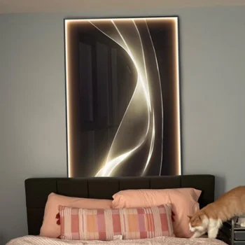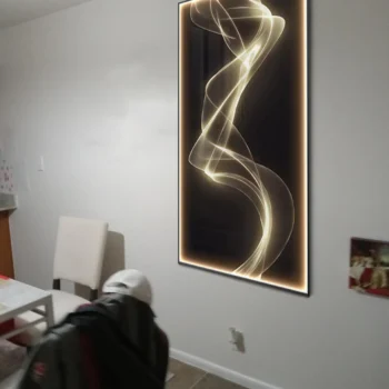 I never thought a wall lamp could elevate my bedroom's ambiance and overall aesthetic as much as this one did. The blend of sophisticated design with functional lighting struck the perfect balance between form and function. The lamp itself is a marvel of modern art, with its high-definition spray painted canvas that comes to life under the LED glow. It serves not only as a source of light but as a piece of art that complements my modern aesthetic perfectly. The adjustable brightness feature has been a game-changer for my evening routine. Whether I'm unwinding with a book or setting the mood for a peaceful night in, the lamp provides just the right amount of light. The remote control feature adds a layer of convenience that I didn't know I needed, allowing me to adjust the light settings without ever needing to leave the comfort of my bed. Furthermore, the energy efficiency of the LED lights has made me feel good about my choice, not just aesthetically but also environmentally. It's rare to find a product that meets all these criteria – beauty, functionality, and sustainability. This lamp has not only met but exceeded those expectations. It's a testament to the thoughtfulness and innovation that went into its design and manufacturing, making it a prized possession in my home.