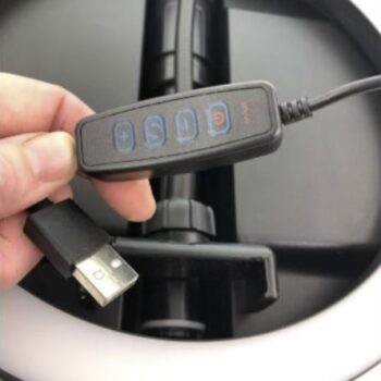 The head on the ring light is front-and-back adjustable at 180 degrees through a fixed knob, allowing you to angle your lighting when needed.