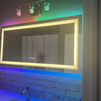 Transform your bathroom into a sanctuary of light and style with the Lux-Illuminate RGB LED Bathroom Mirror. Meticulously designed for the modern home, this large, frameless vanity mirror infuses your space with a radiant glow, suitable for completing daily beauty and grooming routines. Whether you’re looking to add a touch of ambiance or require crystal-clear lighting, our mirror provides versatility and sophistication in one sleek package.