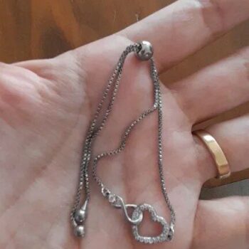 It's really pretty and shiny. The little heart and shiny stones look so nice when I wear it. It's not too heavy or too light, just perfect for wearing all the time. The bracelet feels strong and I think it will last a long time without getting scratched or losing its shine. For the price, I think this bracelet is a great deal. It looks fancy and makes a great gift for someone or even for yourself. I love it 😍💖💖