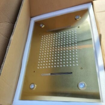 Introducing the epitome of modern bathroom sophistication – our Thermostatic Gold Shower Faucet with Ceiling LED Rainfall Shower Head. Crafted for those who seek a fusion of contemporary style and cutting-edge functionality, this shower system is designed to transform your daily routine into a luxurious spa-like experience. Its gleaming brushed gold finish and grand size elevate your bathroom’s aesthetic, providing a statement piece that is as functional as it is beautiful. Β