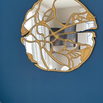 This mirror adds a piece of art to our dinning room. It is a mirror with gold, whimsical lines that highlighting its function as a mirror and conversational piece at our dinning room. Also, seems to be very sturdy construction.