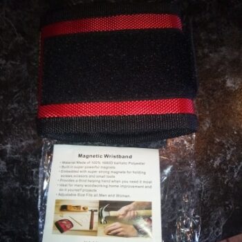 The magnets are pretty strong and can hold a bunch of screw and have little pockets for other items. Also, the package came with two wristbands, so you can optimize both hands and be extremely productive, this is a great products for a working set of hands.