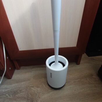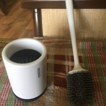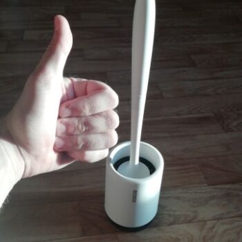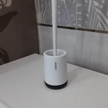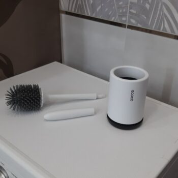 Our brush in total measures 16” x 3.5” (410mm x 90mm), meaning it doesn’t take up a lot of space. No bulky square holders like with traditional, ordinary toilet brushes.