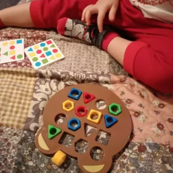 The Montessori Matching Puzzle Board Game has quickly become one of our favorites at home. Its focus on promoting color & shape recognition in such a fun way makes learning enjoyable for my little ones!