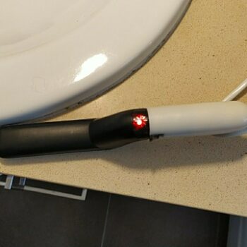 An illuminated power indicator lets you know when your brush is on or off (red is on; no light is off).