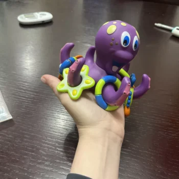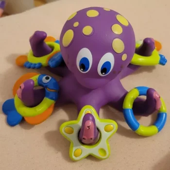 • Interactive Ring Toss: Comes with five colorful rings designed to be tossed onto the octopus’s welcoming tentacles, promoting motor skill development and precision.