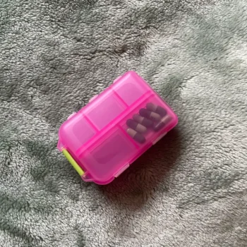 this little pill organizer is a lifesaver! fits perfectly in my bag, and the compartments are just right. no more mixing up my meds 💊