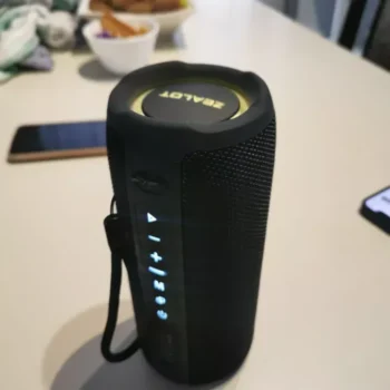 I’m impressed with how rugged yet stylish this bluetooth speaker is – looks good in my living room and also withstands outdoor use easily