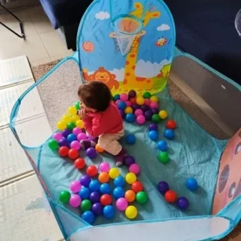 The Portable Kids Ball Pit Play Tent isn’t just a play area—it’s a space for your children to grow. Equipped with a basketball hoop, it’s an excellent tool for developing hand-eye coordination, fine motor skills, and sportsmanship. It’s an ideal setup for play dates, with ample room for multiple children to improve social skills through interactive play.
