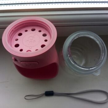 I really like this product but cannot give it a 5 star review as it is not as advertised. It does not hold 12 ounces only 10 ounces. I end up carrying another water bottle as my girl can empty this in one big gulp. I like the fact that if there is any water left it is not wasted. I have contacted the vendor to see if there is a bigger container available and to let them know that it is false advertising but they have not responded. I have not been able to find a bigger container on line yet. I will keep looking.